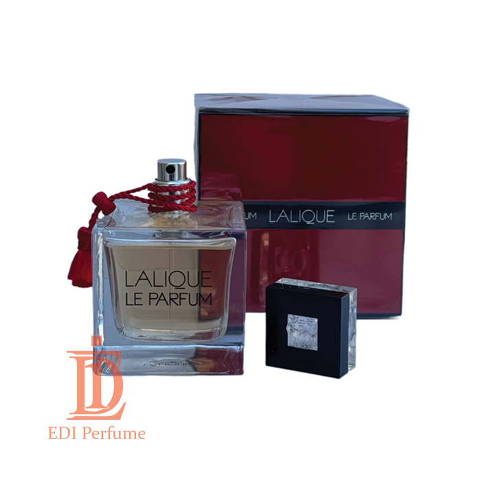 نام “LALIQUE LE PARFUM” با خطی درشت و خوانا بر روی بدنه شیشه و جعبه درج شده که به خوبی نشاندهنده قدرت و وقار این ادکلن است.